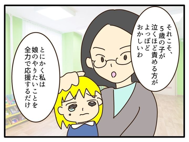 ゆうこの健康と他の子への影響を心配した同級生のママは、えみこに金髪をやめるよう忠告しました。しかし、ゆうこは母が責められていると感じて泣き出してしまい、えみこは「5歳児を泣かせる方がおかしい」と激怒して帰っていきました。