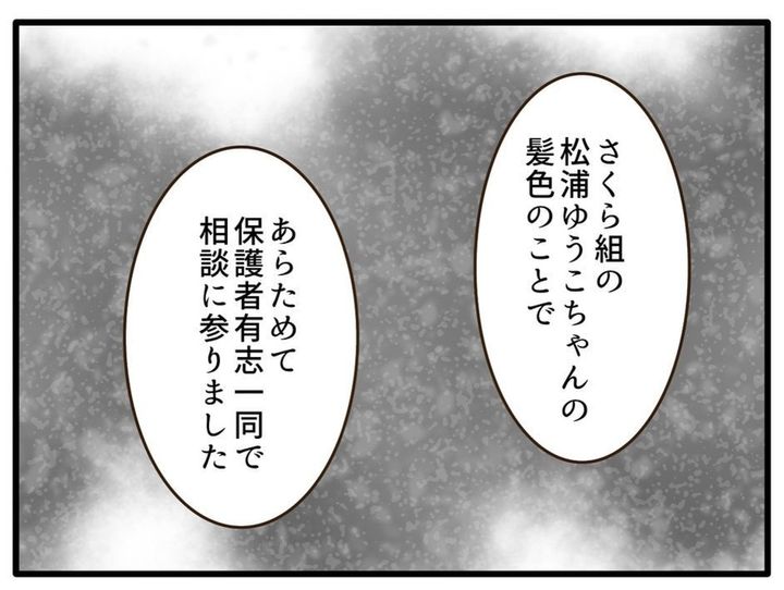 ゆうこが金髪にしたことをよく思わない保護者たちは、園長先生に相談しました。しかし、園側は「金髪に対する指導はしない」と言います。