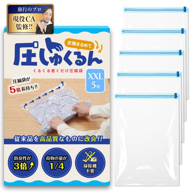 現役の客室乗務員が監修!旅行や衣替えに便利な大型圧縮袋新登場