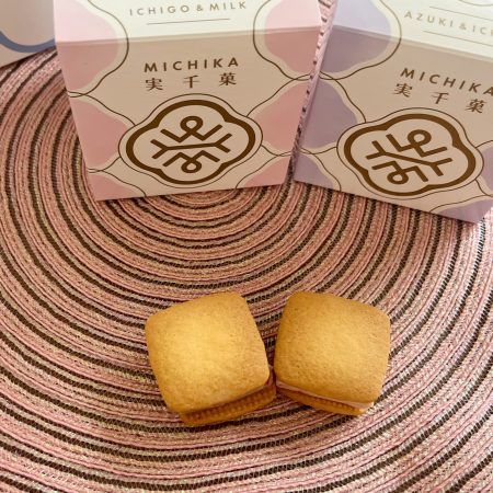 形も名前も可愛いころっとした「実千菓」は、いちごをテーマにした和と洋の味のお菓子です。 ころっとしたサイズのクッキーサンドで、冷やしても美味しくいただけます。