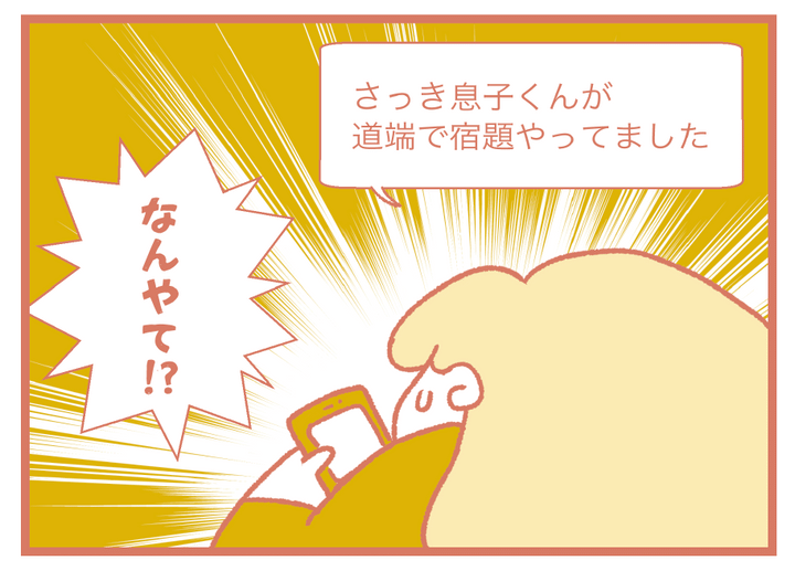 3. 始業式当日の朝、小学生息子が道端で宿題を!?ズボラ親子の血は争えない話