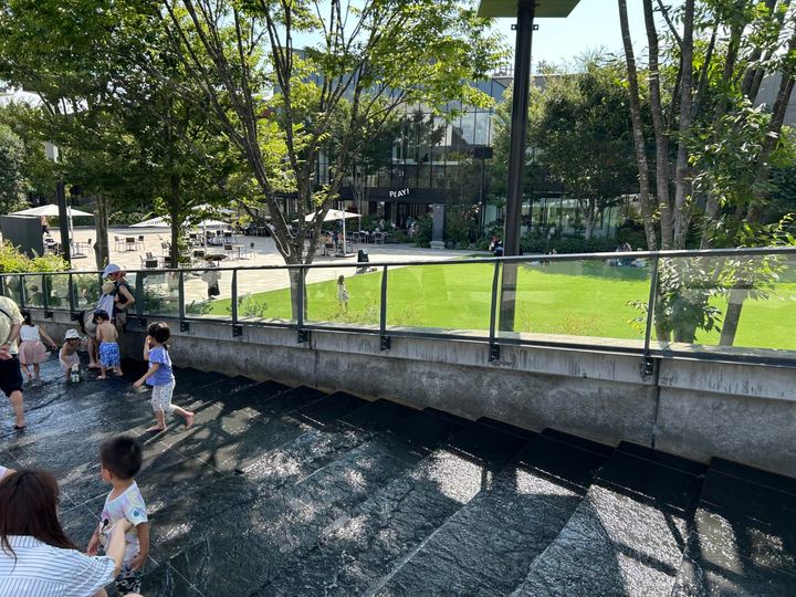 わが家は今回、PARKではなく、PLAY!施設の近くで水遊びをして帰りました(安上り!)。階段の上の方に行けば、建物の影に隠れて涼しく遊べますし、着替えはグリーンスプリングスEAST棟(E2)1階のベビールームが利用できます。