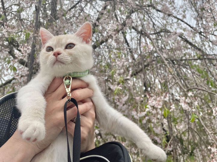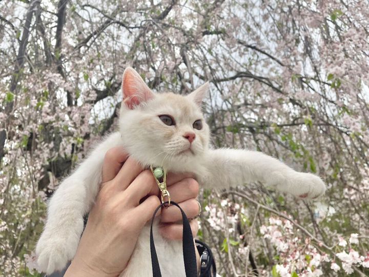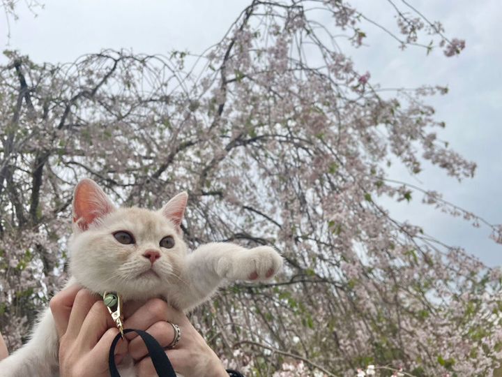 ぼくの検診に行く途中だったんだけど、パパとママが「ヤーヤくん、桜だよ。満開だね。きれいだね」って、しばらくみんなで桜を眺めたよ。小さなお花がいっぱいで、桜ってかわいいなぁって思ったよ。
