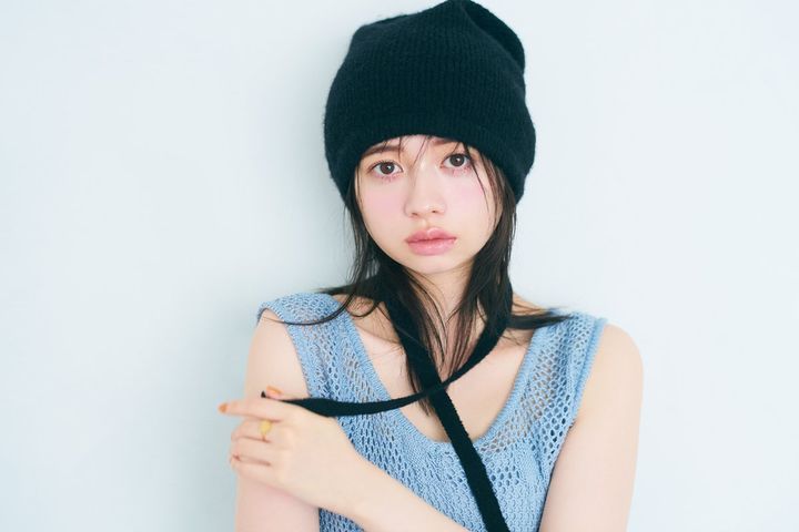 桜田ひより。ar9月号より ニット帽¥10,780 /ロザリームーン(ロザリー) ワンピース(インナー付き)¥19,800/ハニー ミー ハニー リング¥13,200/ビジューアール・アイ
