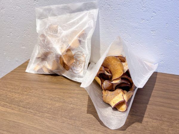 「よそいちのお芋チップス」は厚みがあり、程よい甘さと塩気がたまらず食べる手が止まりませんでした! スイーツとしてはもちろん、お酒のおつまみにも合いそうです。お芋チップスは自社工場で作っているとのことでした。
