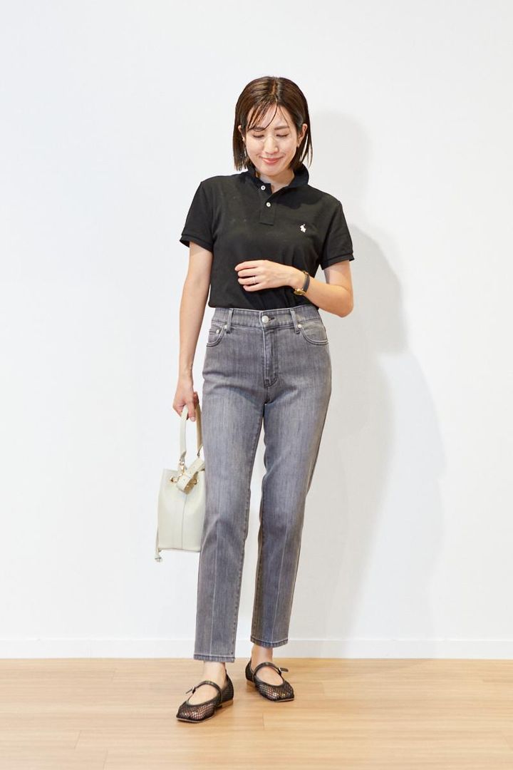 【スティックジーンズ】「穿く前はちょっとタイトかな…と思っていたのですが、スラっと脚が細く見えるのにストレッチが効いているおかげで締め付け感が皆無。あれ、私ってこんなに華奢だったっけ?と思ってしまうほど細見えが叶います。足首がちょうど隠れるぐらいの丈で、意外と合うものが少ないローファーとも相性が良さそう」