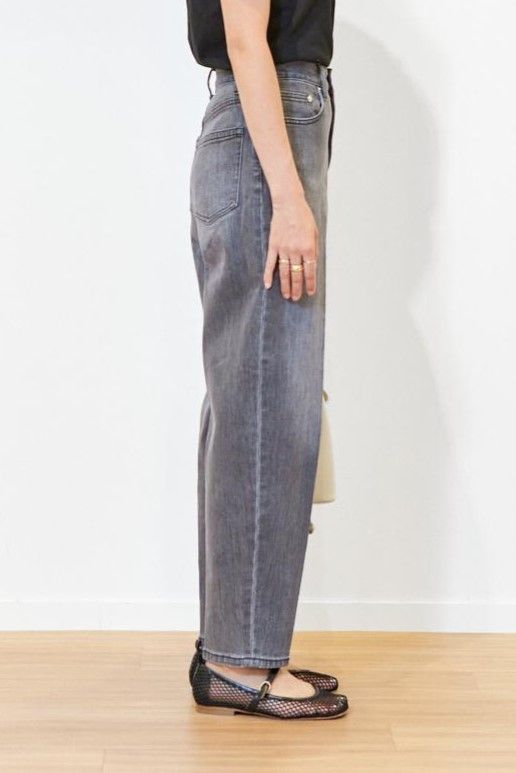 「太すぎないワイドシルエットで、きれいめなトップスとの相性も抜群。ワイドデニム挑戦したいけどカジュアルに見せたくない人におすすめです。裾に向かって伸びるまっすぐなセンタープレスがとにかく脚をキレイに見せてくれ、スタイルに自信をくれます」