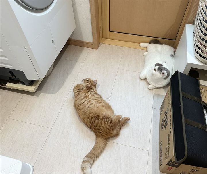 新しくお家に導入されたドラム式洗濯機。 物珍しいのか、ネコたちが集まってきているかわいい光景が反響を呼んでいます!