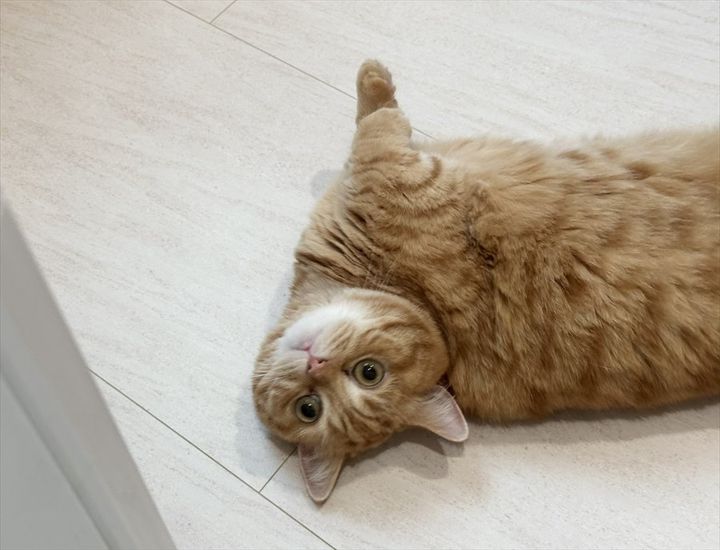 くりっくりのまんまるおめめを飼い主さんにも向けてくれたようです。 しかし、よほど気になるのかその場から移動したり身を起こすつもりはないみたいです。