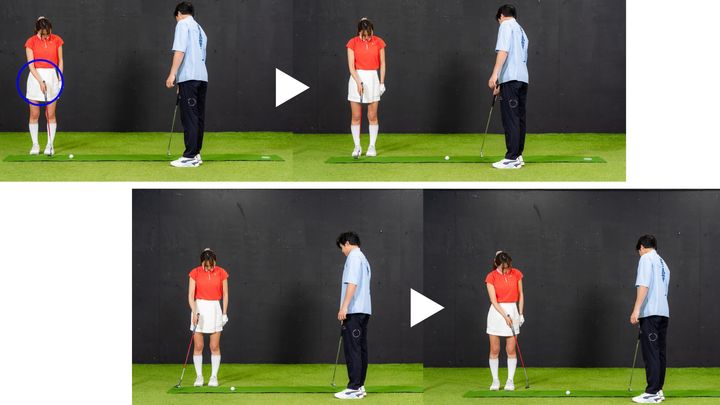 基本的にグリップが緩んでいる人は、インパクトでフェース面を目標に対してスクエアに合わせようとした瞬間に力が入ります。すると、フェースの向きが変わったり、ボールを強くヒットしてしまうので、方向性と距離感が合いません。アドレスからフォローまでパターを握る強さが一定であれば、そのような急激な変化は起こらないのでカップインの確率は上がります。