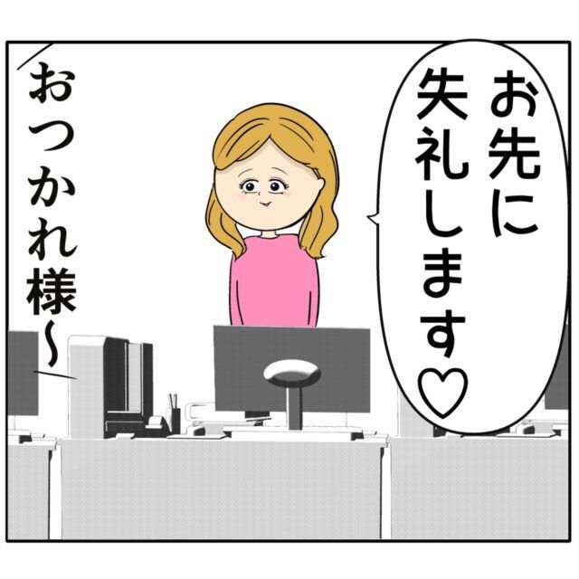 終業時間になると「お先に失礼します」と席を立つふり子さん。