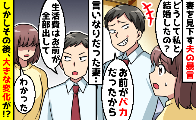 「なんで私と結婚したの?」「バカだから」暴言を放ち、見下す夫。言いなりだった妻に衝撃の変化が!?
