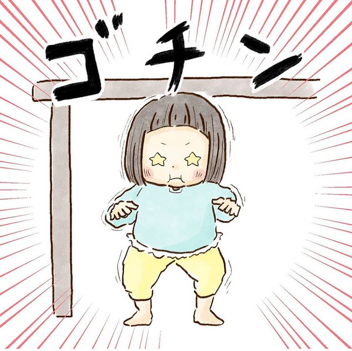 結構な勢いでゴチン!!とテーブルに頭をぶつけた次女…泣くわけでもなく洗面台に向かって何を確認しているのかと思ったら…!!!アニメに出てくるようなたんこぶを期待していたようです。