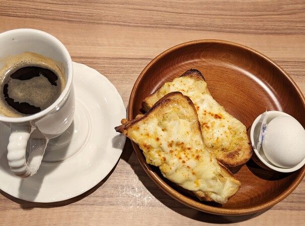 コクのあるチーズがたっぷりなので、トーストからこぼれるほどのボリューミーなモーニングです。