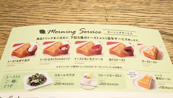 ※モーニングを実施していない店舗もあるので公式サイトで確認してください