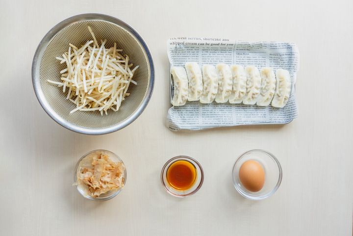 餃子は焼いてももちろんおいしいけれど、炒めてもGOOD! 今回はチャンプルー風に。シャキシャキのもやしと卵でボリュームアップ、だしの味わいが合わさったおいしい組み合わせです。合わせる野菜や味付けを変えて、アレンジも楽しんでみてくださいね。