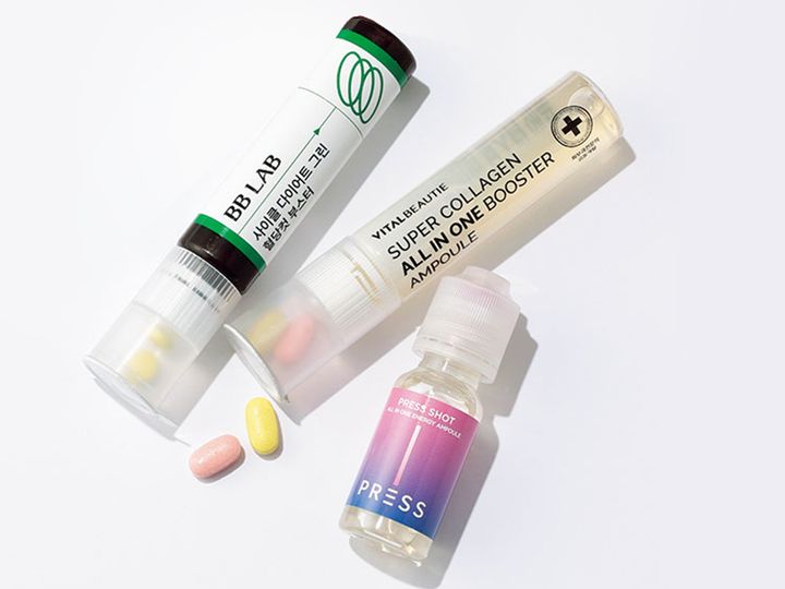 お疲れの日もこれさえ飲めば、肌が潤って元気に! スーパコラーゲンオールインワンブースター 15㎖ +錠剤8本 ₩29,900。