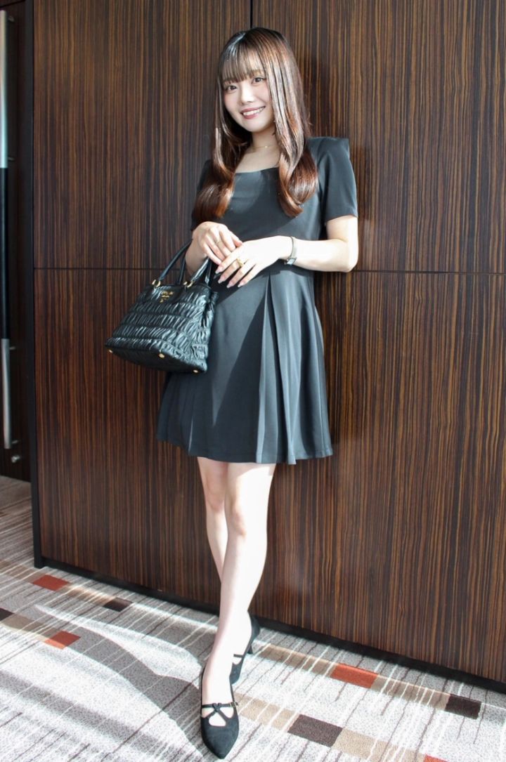 ハロウィンのイメージにあわせて、全身ブラックでまとめたコーディネート。「このワンピはシルエットが細見えするので気に入っています」(長谷さん)