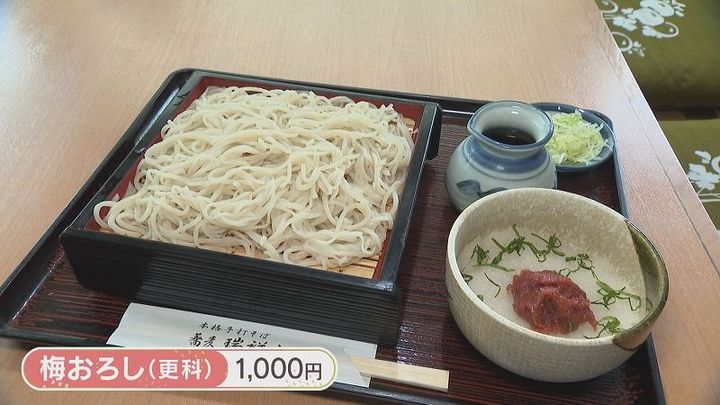 一番人気。美しい細目の更科蕎麦と、大根おろしの上には梅がたっぷりと乗ってます。