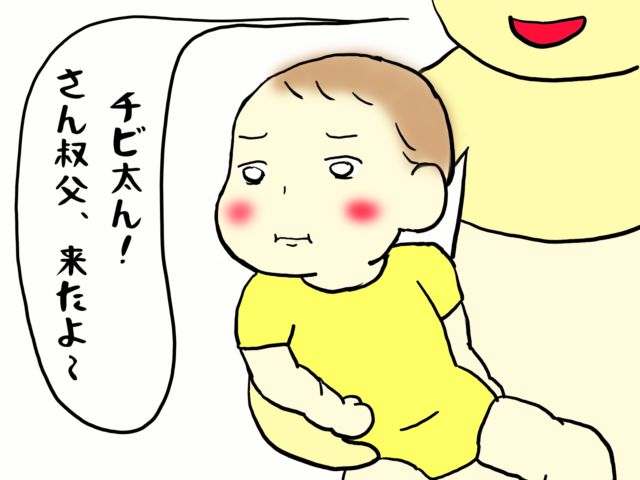 3. 人見知りスイッチ発動。久々の再会に胸が高鳴る叔父とは裏腹に受け入れ拒否する甥っ子を溺愛する叔父[4]|てる子の育児日記