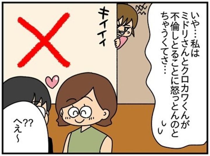 この作品は作者・ぱん田ぱん太さんが知人に聞いた話をもとにして描いた作品です。主人公・きよかは、娘・こりんちゃんと一緒に子育て支援センターへ通うのが日課です。次第に仲良しグループができあがります。しかしその中で、ミドリさんとクロカワくんが不倫関係に。そのころから、ミドリさんは人が変わり、きよかとの関係が悪化します…。著者・ぱん田ぱん太(きよかちゃんシリーズ)(@pandapanta1402)さんの漫画作品『ママ友×不倫』第45話をごらんください。