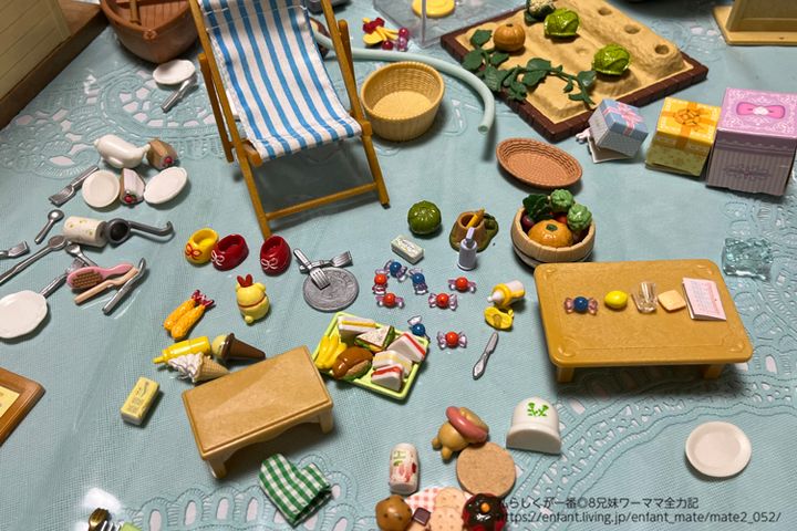 食品が豊富だと遊びが充実する一方、細かすぎて紛失も多々あります