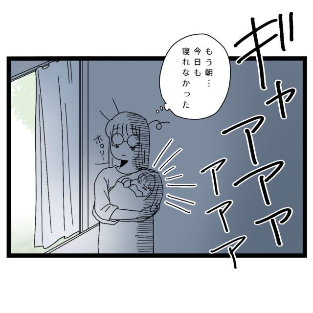 そして退院して帰宅してからというもの、育児に明け暮れる毎日が始まりました。「ギャアアアアアア」泣き叫ぶキラくんを抱っこしながら「もう朝・・今日も眠れなかった」そう呟くアサ子さん。