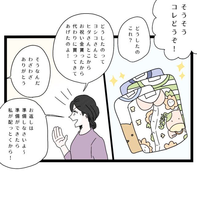 3. 友人からの出産祝いで勝手に買い物、お返しの準備だけは娘に投げる実母がしんどい[7-1]|ママ広場オリジナルマンガ