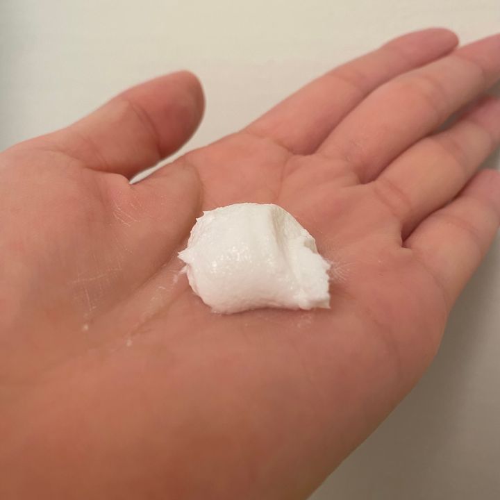 ②マスカット大のサイズを手に取り、顔にくるくると馴染ませます