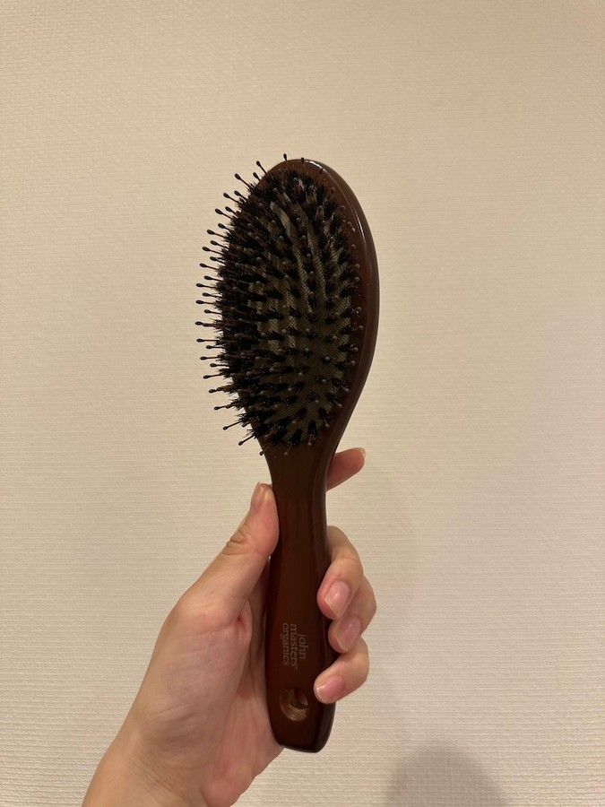 こちらは朝起きた時に寝癖直し用のブラッシングとして使っています。このブラシを使うと髪にまとまりとツヤが出るので忙しい朝でもきれいな髪に仕上げることができます。ブラシの固さもちょうど良いのでブラッシングがとっても気持ち良いです。