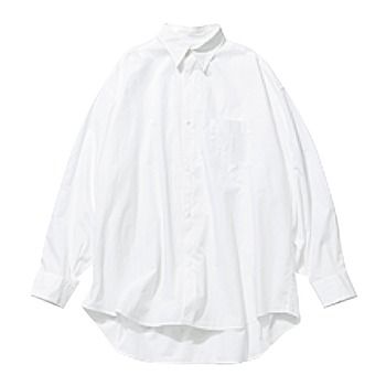 【1】サイズの違いで生まれるけだるさ「白のえりつきシャツ」