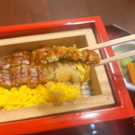 鰻の旨みを閉じ込めて、蒸すことでふんわりさらに柔らかに!錦糸卵のまろやかな味わいと、タレ、鰻がお米にもよく合います。