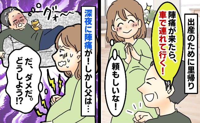 「陣痛が来たら車出すからな!」しかし結局酔って運転できない父。困り果てた私は思い切ってある行動に