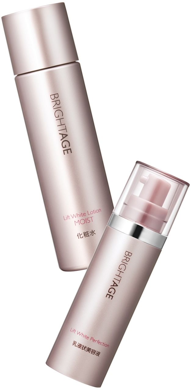 [2]2017年のデビュー以来、シリーズ累計販売本数900万本超(2023年5月末時点)。製薬会社が開発した話題のエイジングケアブランド、ブライトエイジから「リフトホワイト ローション モイスト」120ml ¥5,500と「リフトホワイト パーフェクション」40g ¥8,800のセット(写真)