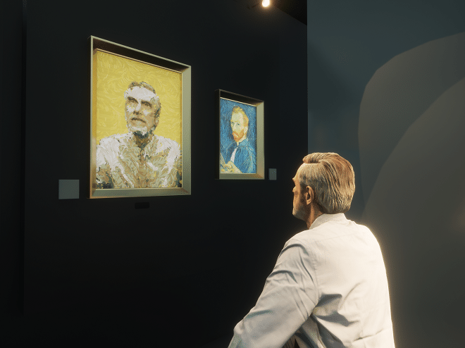 「Your Portrait by Vincent van Gogh」は、今回のイベントの様子をSNSに投稿することで体験できる企画。椅子に座るとセンサーが顔や位置を認識し、真っ白なキャンバスに、投稿した本人の肖像画が徐々に描き上げられるのだそう。