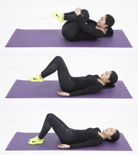 (1)床やベッドに仰向けになり、体を丸める感じで両ひざを胸元に寄せる
