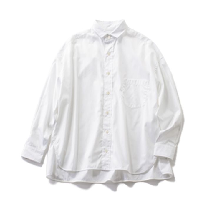 仕事服として一枚は持っていたい、スタンダードなデザイン。¥26,400(ティッカ)