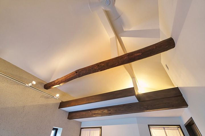 何となく見上げると、天井に立派な梁がわたっていました。この建物自体も古く、70年ほどが経過しているそう。この梁は前身の事務所がリフォームしたときに出てきたもので、これに合わせた空間にしたそうです。