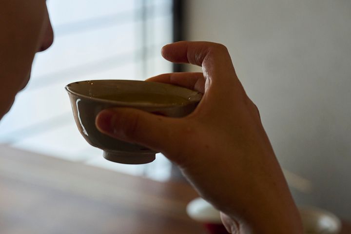 「伍」では通常、1つの茶葉につき3煎入れてもらえます。まずは、1煎目。静かに注がれる日本茶から、ほのかな茶葉の香りがふわっと広がります。ちなみに、取材時は猛暑日。こんな日はゴクゴクと冷たいお茶を一気に飲み干したいところですが、温かいお茶をゆっくりと飲むことで体に風味がじんわりと広がり、おいしく味わうことができました。基本的には温かいお茶での提供ですが、希望があれば冷茶にして提供してもらうことも可能です。