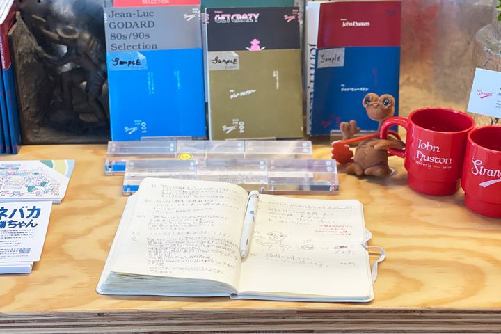 グッズ販売コーナーにはノートが設置されていて、自由に映画の感想を書くことができます。ひとりで訪れた際もほかの人の感想が楽しめるのは面白いですね。