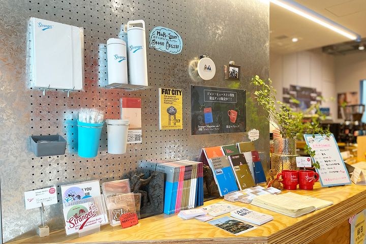 カフェ内ではグッズも販売しているので、食事を待つ間や食事の後に寄ってみるのがおすすめです。上映作品のグッズだけでなく、「ノート」1500円や「タンブラー」4400円〜、「ステッカー」580円などのオリジナルグッズや、Strangerオリジナルの「マガジン」1400円〜の販売も。