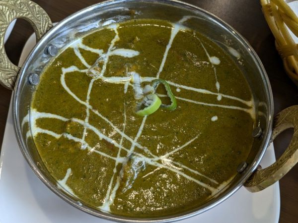 どのセットも7種類のカレーから選べて、辛さも5段階選ぶことができます。そして、プレーンナンも1枚お替わり無料なのですが、1回目にライスを選んでもナンが無料でお替りできるというんです。このサービス、結構珍しいと思います♪ということで、夫と私はライスに。そして、息子&夫組はディナータイムにしかない「ほうれん草チキン」、娘&私組は「ポーク」、辛さは1の娘、4の息子と私、5の夫で、ディナーセットをオーダーです。 因みにランチはもっとリーズナブルな「日替わりカレーセット」もあり、ほぼ毎日インスタでその日のカレーを紹介しているので、お気に入りの日に食べに行けるのが嬉しいですね♪