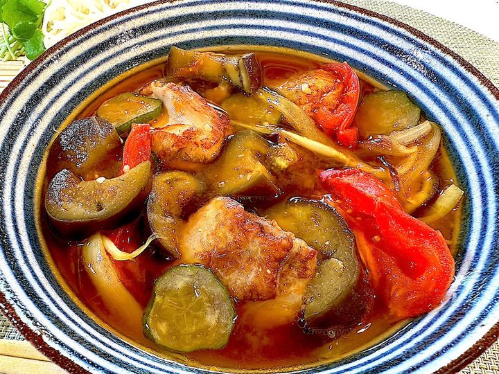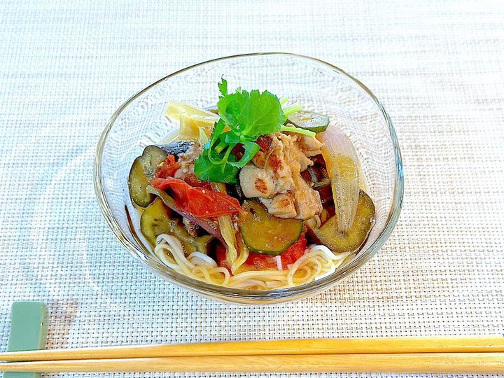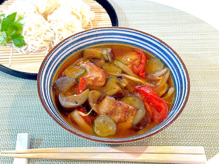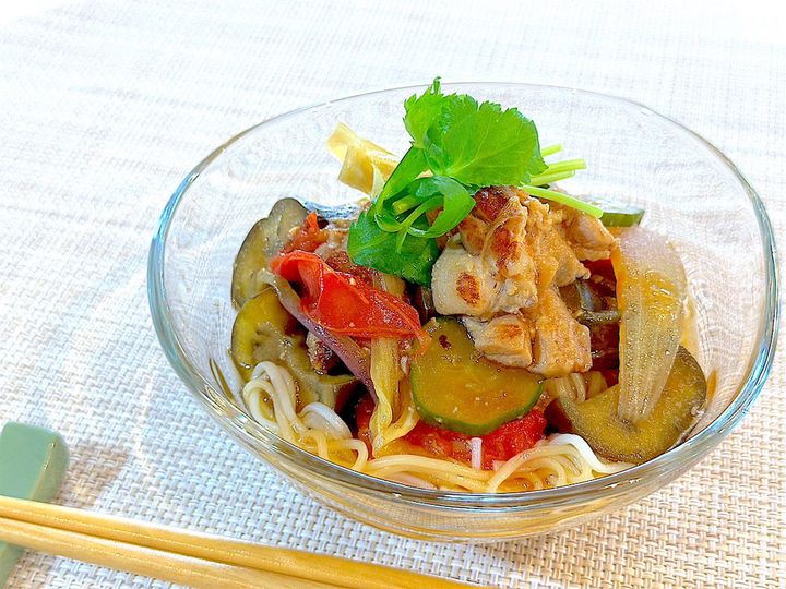 夏野菜&鶏もも肉でコク旨「野菜たっぷりのめんつゆ」