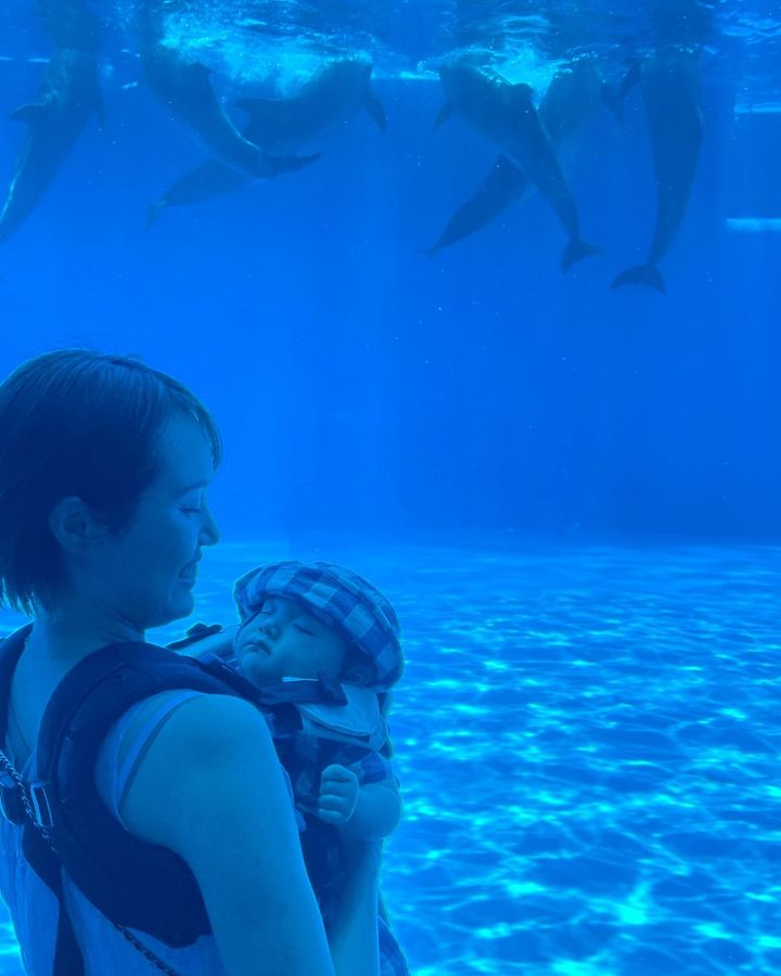 水族館にお出かけした生後7カ月の男の子。イルカショーは怖くて号泣してしまったそう。