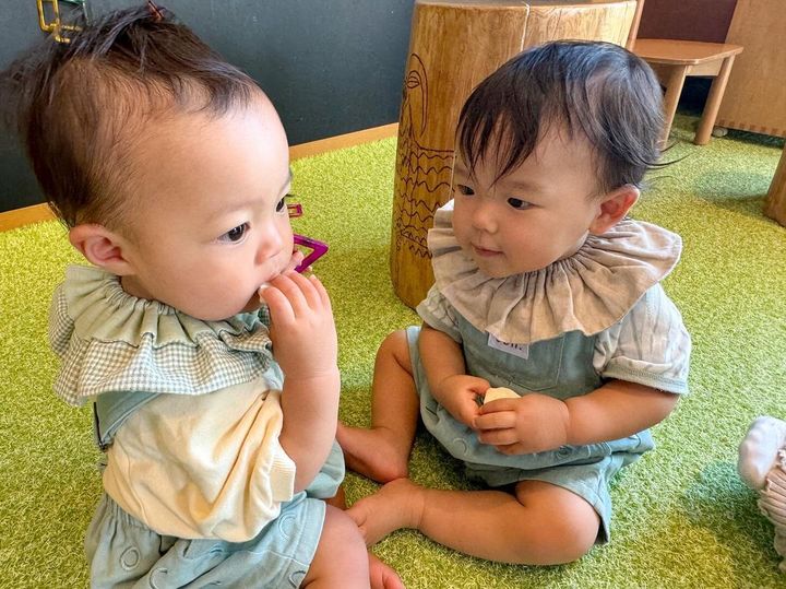 3. 眼福♡ かわいさ2倍以上!「何を話しているのかな?」お友だちと遊ぶ赤ちゃんに癒される♡
