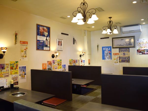 店内は掘りごたつ席やテーブル席、カウンター席があります。 現代の感覚に懐かしさをプラスした和モダンな空間です。 落ち着いた雰囲気で大正ロマンが漂う照明も素敵ですね。