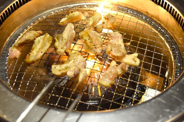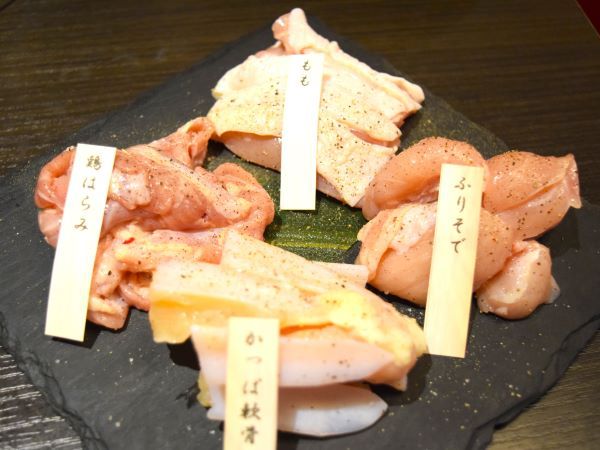 そして、お待ちかねの「大山どりおまかせ4種盛り」(1320円)! 一皿で大山どりのいろいろな部位の味や食感が味わえます。 自分で焼くセルフスタイルになっています。お好みの焼き加減で召し上がってくださいね♪