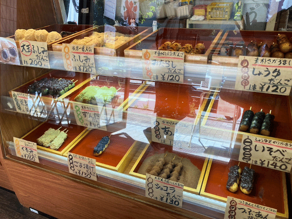 みたらしだんごは適度にあまじょっぱいタレが絶妙!弾力がありもちもちしていて、歯応え抜群です。