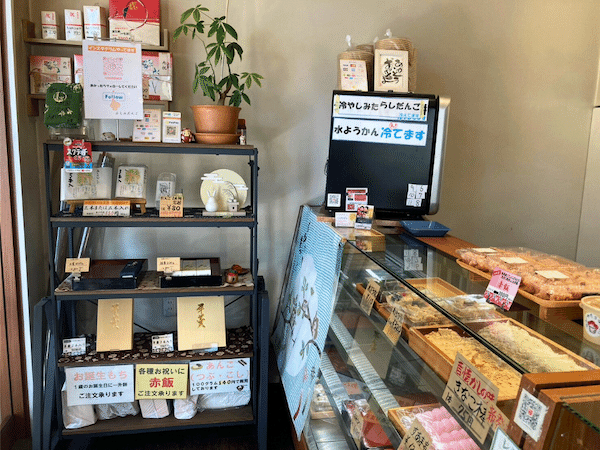 ショーケースには、美味しそうな和菓子がずらり。1個ずつ購入することもできます。