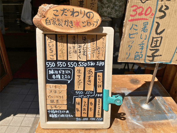 今回のお目当てはかき氷!こだわりの自家製シロップで作られており、素材の味を存分に楽しめます。
